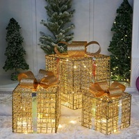 ידידותי לסביבה ידידותית לסביבה מודרנית חג המולד קישוט אמנות חג המולד אווירה קשת מתנה תיבת שלושה חלקים סט ברזל אמנות קישוט אור